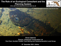 Cathrine, C. 2021. The Role of an Ecological Consultant and the Planning System. Scottish Wildlife Trust Stirling and Clackmannanshire Local Group Winter Talk. Online, 07 December 2021. | |